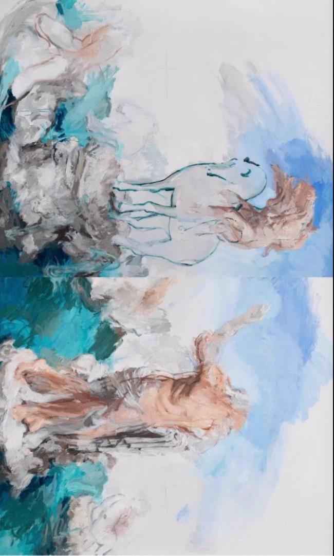 Si Bowen, who came from the First Oil Painting Studio of the Central Academy of Fine Arts, had studied abroad in France for two years. His study experiences partly explained the classical visual language and preferred themes that has been running through his works. When talking about his work, the artist emphasizes the importance of "relationship". Indeed, we can see arrys of different relationships in his paintings: between colors, bodies, human and environment, self and others, etc.. All these make his paintings filled with implicit and subtle balance. On the other hand, the strong, broken and distorted bodies painted by Si Bowen also carry his most intuitive feelings during the creation process, just as what Deleuze elaborated as the "painting sensation" in Bacon's paintings, where the "sensation" is gradually unfolded in the details of the works: both the tension and rhythm are hidden in the brushwork and occasionally bright colors. They seem like opportunities provided by the artist for us to appreciate the real intention behind the work, from which the viewers peer into the work and embark on the journey step by step.