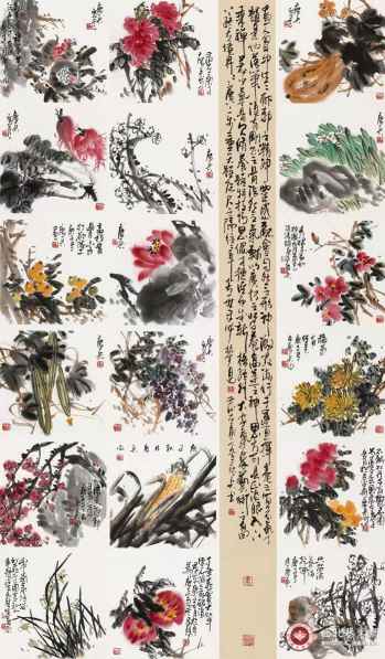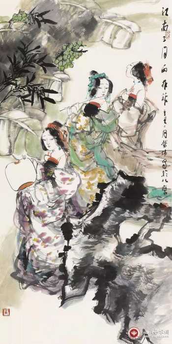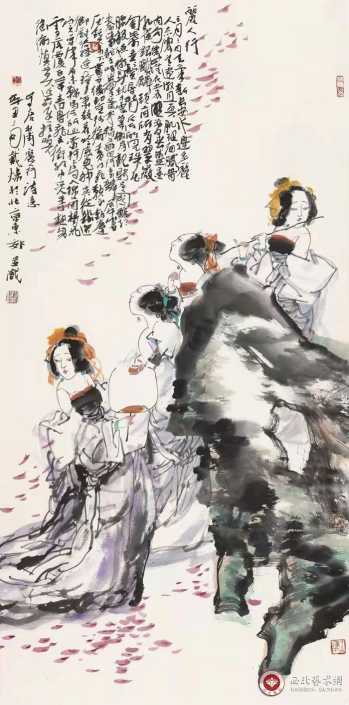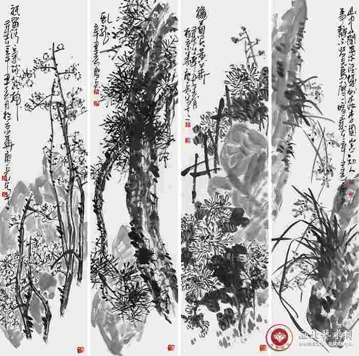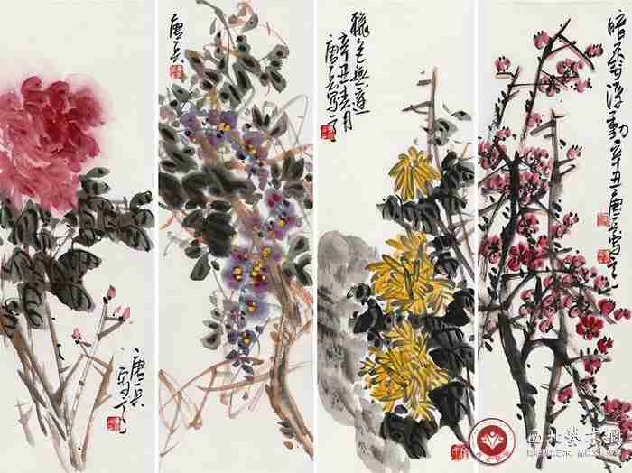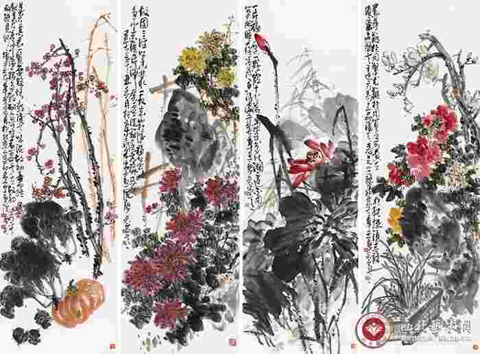 其作品具有金石气息、笔力雄浑、设色典雅、富于变化,风格大气雄浑且趣味性强,极具时代特征和个人风格。