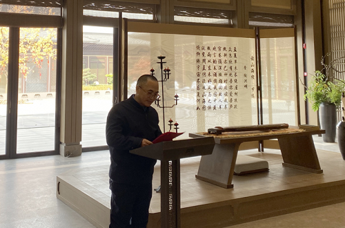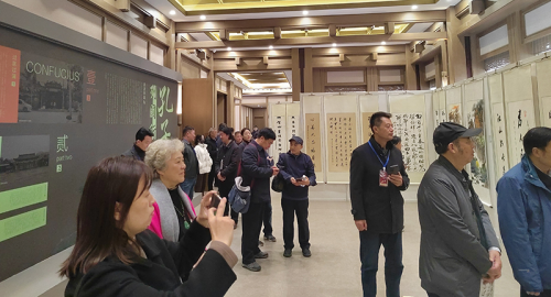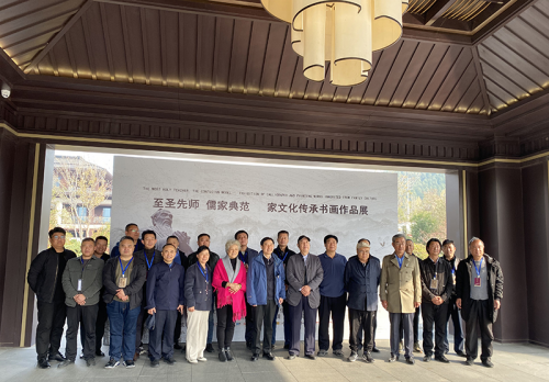 11月22日下午,在中国楹联学会书画艺术院的指导下,“至圣先师 儒家典范”——家文化传承书画作品展在山东曲阜尼山圣境耕读书院开幕,莅临此次展览开幕式的领导和嘉宾有中国文联办公厅原主任、中国民间文艺家协会顾问罗杨先生,中国国家画院书法纂刻院执行院长李晓军先生,中国楹联学会名誉副会长陈联合先生;出席此次展览活动的企业有山东金德建筑工程有限公司,山东廷瑞装饰有限公司,山东建豪企业咨询管理有限公司,中研鲁班技术咨询服务(山东省)有限公司,济宁星彩建筑有限公司,曲阜市圣创装饰工程有限责任公司,曲阜礼行研学旅游公司,山东旺福达商贸有限公司,各大媒体及各界朋友80多人出席了开幕式。