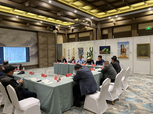 开幕式上,由中国楹联学会名誉副会长陈联合先生致辞,侯泓良副院长作为艺术家代表发言,中国文联办公厅原主任、中国民间文艺家协会顾问罗杨先生宣布展览开幕;随后参观了尼山圣境耕读书院别墅并在会议室召开了家文化座谈会,罗杨书记针对“书法:园林古建筑的点睛之笔”做专题讲座;陈联合主席就“家文化”的传承发展与参会嘉宾做进一步的交流沟通。