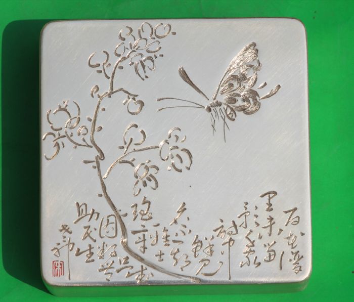 2013年参加中国文联、民协在开封举办的“中国工艺美术展”《刻铜大墨盒》获银奖。