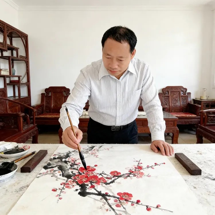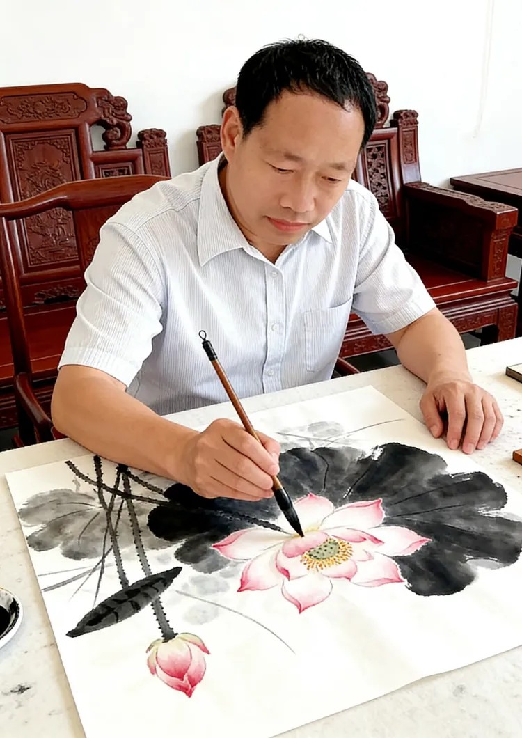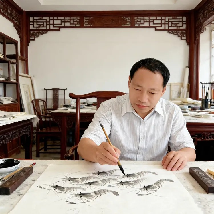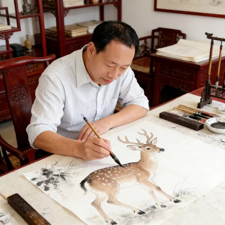 力求画作中墨色变化丰富,浓淡相宜,尽量对"度"的把握达到中庸和谐。给观者以"禅静"之悟,逐成沉实平和与端雅时尚之风格。