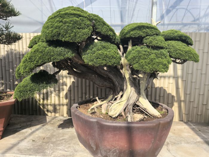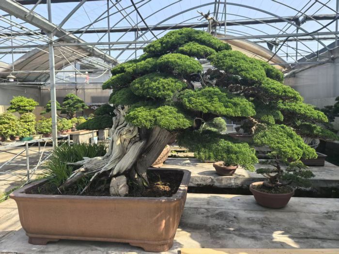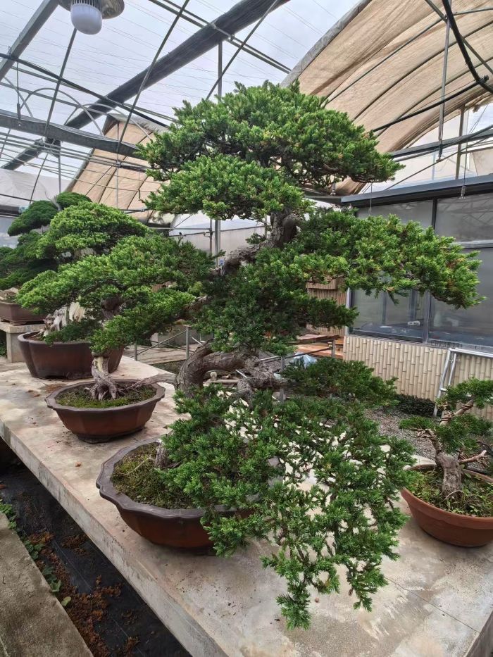 这份“奇迹”,源于他对传统技法的敬畏,更源于与自然对话的智慧。徐大龙始终坚守“粗扎细剪”的古法,从不强行改变草木本性:桩石相契要顺其纹理,枝叶舒展需合其长势,每一处细节都追求“虽由人作,宛自天开”的意境。更难得的是,他将文人意趣融入盆景创作——深研中国画笔墨韵味与古典诗词意境后,他依文征明诗意打造水石盆景,让“倚空石壁”的诗中景象跃然盆中,真正实现了诗、画、景的交融共生。